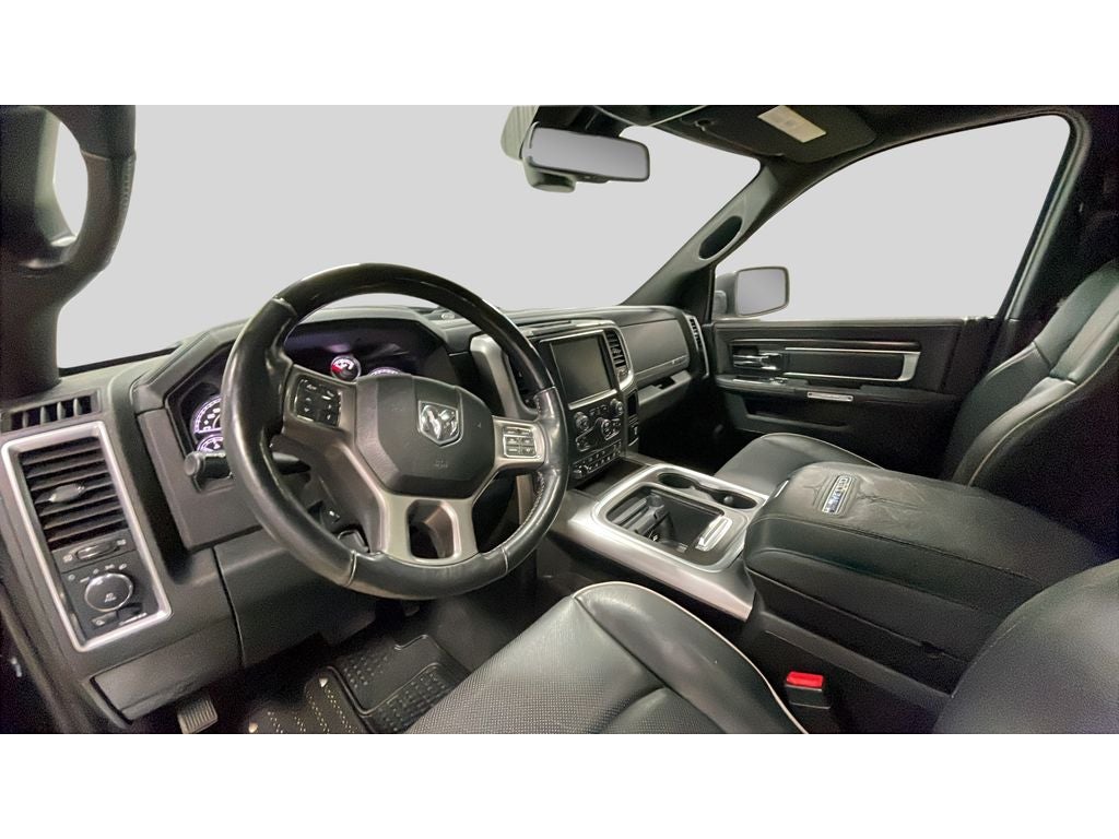 Quick Order Package 26V Limited: 4-Corner Air Suspension; Luxury Front and Rear Floor Mats; Rear Window Defroster; Chrome Bodyside Molding; Wood/leather Wrapped Steering Wheel; 20" X 9" Painted Aluminum Chrome Insert Wheels; Ram 1500 Badge; Chrome Ram Badge; Chrome Grille with RAM Letters; Leather Wrapped Grab Handle; Heated Second Row Seats; Heated Front Seats; Laramie Limited Leather Bucket Seats; Heated Steering Wheel; Body Color Front Fascia; Body Color Rear Bumper with Step Pads; Bucket Seats; Chrome Belt Moldings; High Back Seats; Rear 60/40 Split Folding Seat; Steering Wheel Mounted Audio Controls; Delete Tow Hooks; Laramie Limited Group; Ventilated Front Seats; Limited Tailgate Applique 4x4; Luxury Door Trim Panel; 115V Auxiliary Power Outlet; Center Hub; Folding Flat Load Floor Storage; Wheel to Wheel Side Steps; Laramie Limited Cluster; Black Closeout Trim; Power 10-Way Memory Driver and 6-Way Passenger Seats. Chrome Bumper Package: Bright Rear Bumper; Body Color Fender Flares; Bright Front Bumper. Power Sunroof. Anti-Spin Differential Rear Axle. Trailer Brake Control. Black Ram Tailgate Nameplate. Locking Lug Nuts. Add Tow Hooks. **Equipment listed is based on orig