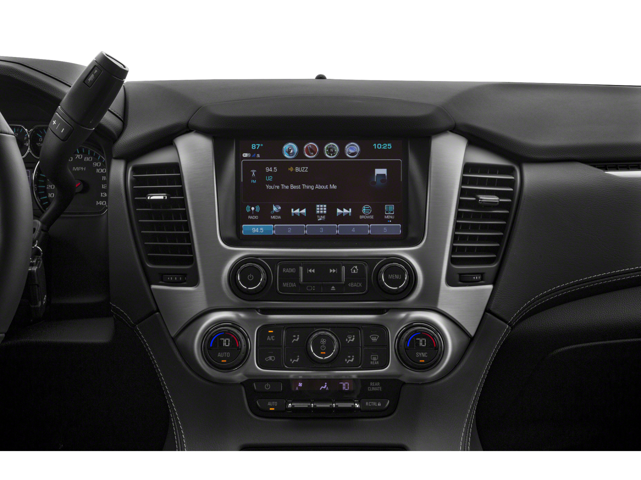 Open Road Package: AM/FM/SiriusXM Radio with Navigation; Rear Seat Blu-Ray/DVD Entertainment System; Power Tilt-Sliding Sunroof with Express-Open/close. Preferred Equipment Group 4SA: Power Release 2nd Row 60/40 Split-Folding Bench Seat; Memory Package; Heated Leather-Wrapped Steering Wheel; Hands Free Power Programmable Rear Liftgate; Full-Feature Reclining Bucket Seats; Lane Change Alert with Side Blind Zone Alert; Single-Speed Elec Autotrac Active Transfer Case; Black Assist Steps with Chrome Strip; Power Tilt and Telescopic Steering Column; Passive Entry System; Enhanced Driver Alert Package; Electronic 6-Speed Automatic Transmission with Overdrive; 5 Auxiliary 12-Volt Power Outlets; Rear Cross Traffic Alert; Inside Rearview Auto-Dimming Mirror; Power-Adjustable Pedals For Accelerator and Brake; Push Button Keyless Start; 18" X 8.5" Bright Machined Aluminum Wheels; Premium Smooth Ride Suspension Package; Universal Home Remote; 4-Wheel Antilock Disc Brakes. Rear Seat Blu-Ray/DVD Entertainment System. Power Tilt-Sliding Sunroof with Express-Open/close. AM/FM/SiriusXM Radio with Navigation. **Equipment listed is based on original vehicle build and