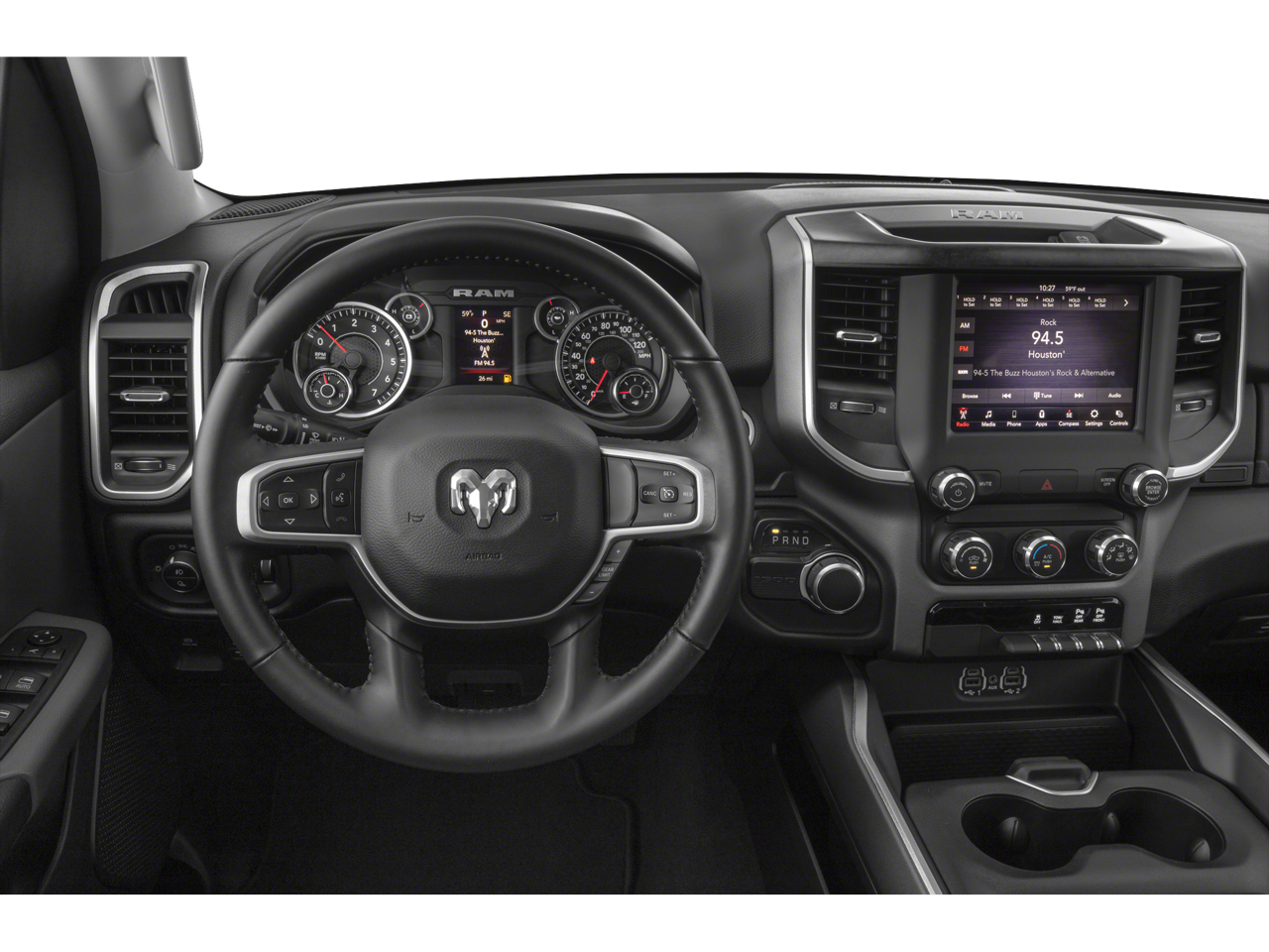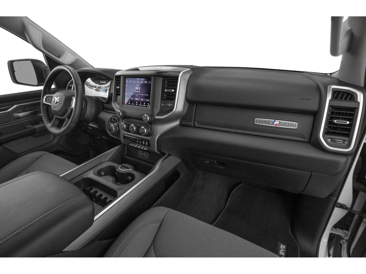Quick Order Package 27Z Big Horn/Lone Star: Steering Wheel Mounted Audio Controls. Big Horn Level 2 Equipment Group: Rear Window Defroster; Integrated Center Stack Radio; ParkSense Front/rear Park Assist with Stop; Rear View Auto Dim Mirror; Power Adjustable Pedals; Rear Power Sliding Window; Rear Dome with On/off Switch Lamp; Glove Box Lamp; Power 4-Way Driver Lumbar Adjust; 115V Auxiliary Rear Power Outlet; Power 8-Way Driver Seat; 2 USB Full Function/charge Only Media Hub; Heated Front Seats; Heated Steering Wheel; 8.4" Touchscreen Display; Foam Bottle Insert (door Trim Panel); Class IV Receiver Hitch; Dampened Tailgate; Security Alarm; Power Heated Fold Away Mirrors; Big Horn Instrument Panel Badge; Remote Start System; SiriusXM Satellite Radio; 400W Inverter; Air Conditioning ATC with Dual Zone Control; 115V Auxiliary Power Outlet; Cluster 7.0" TFT Color Display; Universal Garage Door Opener; Single Disc Remote CD Player; Sun Visors with Illuminated Vanity Mirrors. Sport Appearance Package: Deluxe Cloth Bucket Seats; Exterior Mirrors with Supplemental Signals; Power Heated Fold-Away Mirrors; Body Color Door Handles; Exterior Mirrors Courtesy Lamps; Auto Dim Exterior Driver Mirror; Exterior Mirrors with Memory; Grille B/color Outline 1 Texture 2; Black Interior Accents; Power-Folding Mirrors; Body Color Front Bumper; Body Color Rear Bumper with Step Pads. Bed Utility Group: Spray in Bedliner; 4 Adjustable Cargo Tie-Down Hooks; Pick-Up Box Lighting. Premium Lighting Group: Front LED Fog Lamps; LED Reflector Headlamps; LED Taillamps. Trailer Tow Group: Trailer Brake Control; Exterior Mirrors with Supplemental Signals; Add Class IV Receiver Hitch; Exterior Mirrors Courtesy Lamps; Power Black Trailer Tow Mirrors; Trailer Tow Mirrors. Protection Group: Steering Gear Skid Plate; Tow Hooks; Transfer Case Skid Plate; Front Suspension Skid Plate; Fuel Tank Skid Plate. 20" X 9" Aluminum Chrome Clad Wheels. Dual-Pane Panoramic Sunroof. Uconnect 4C Navigation Radio with 8.4" Display. 9 Amplified Speakers with Subwoofer. Blind Spot and Cross Path Detection. E-Locker Rear Axle. Deluxe Cloth Bucket Seats. ParkSense Front/rear Park Assist with Stop. 33 Gallon Fuel Tank. Single Disc Remote CD Player. Trailer Brake Control. Remote Start System. Rear Wheelhouse Liners. Rear Underseat Compartment Storage. Diamond Black Crystal PC. 3.92 Rear Axle Ratio. **Equipment listed is based on original vehicle build and subject to change. Please confirm the accuracy of the included equipment by calling the dealer prior to purchase.**