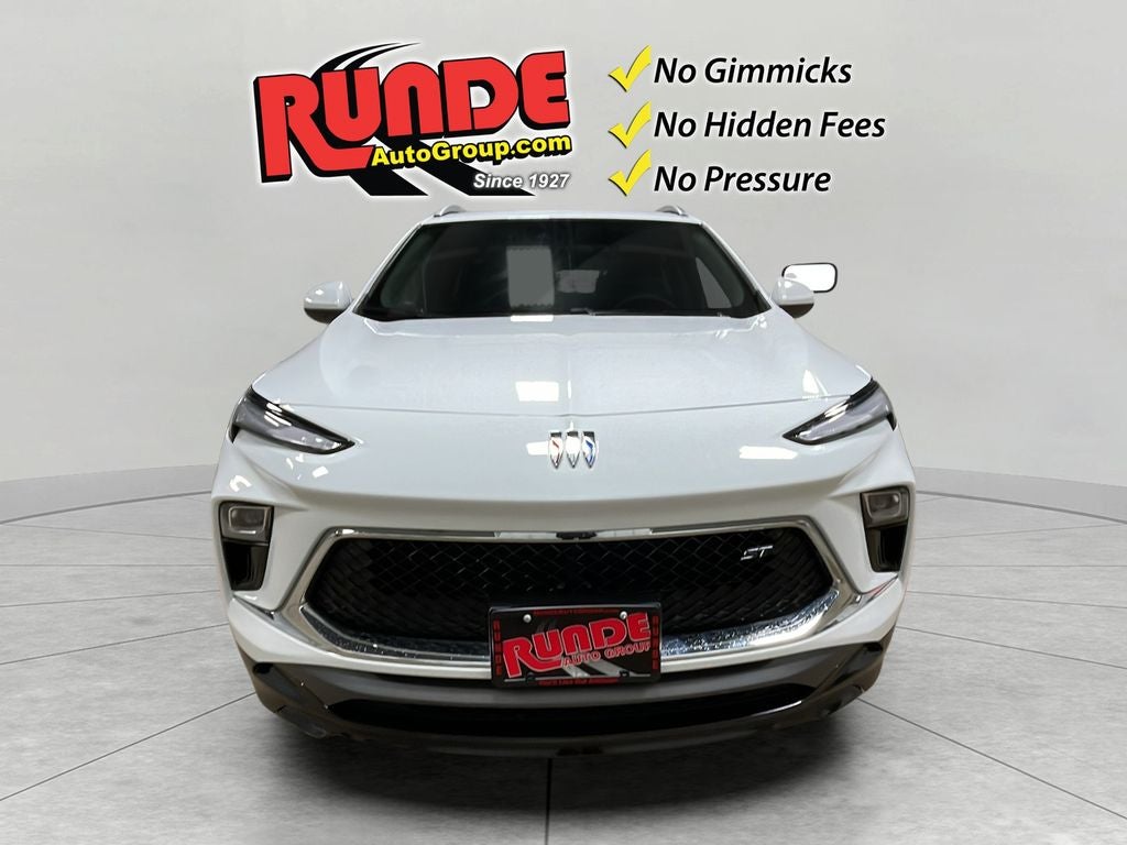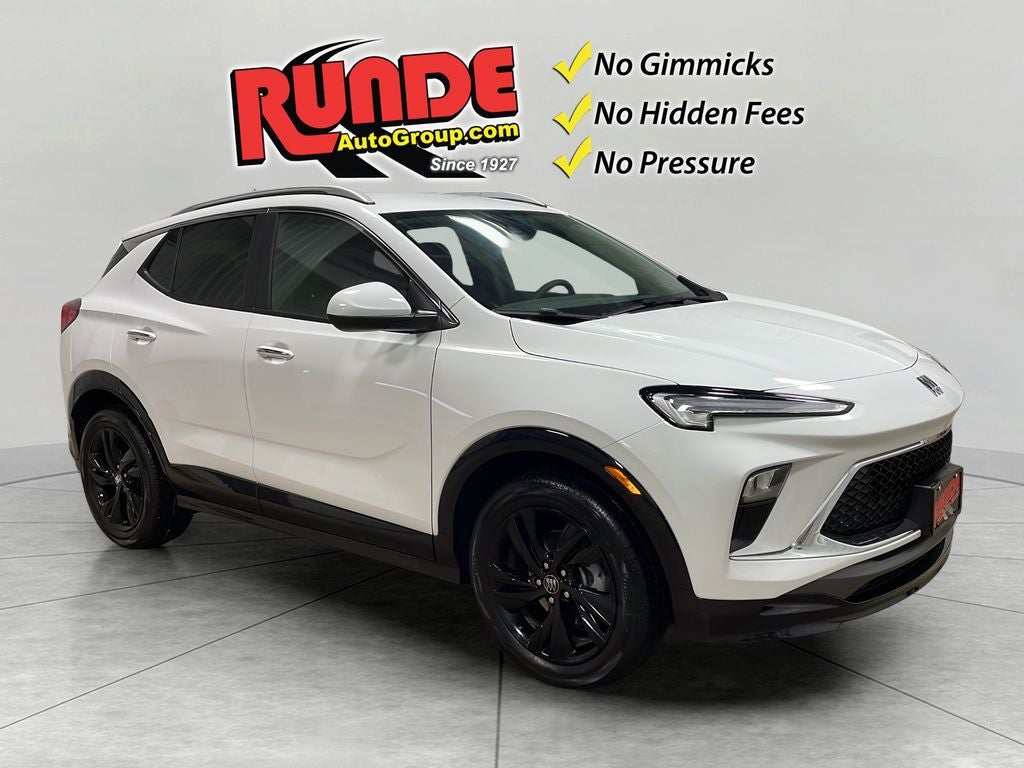2024 Buick Encore GX Sport Touring — low-mileage gem in Hazel Green, WI. This stylish compact SUV comes with just 5,374 miles, front-wheel drive, and an efficient 3-cylinder 1.3L gasoline engine that balances spirited performance and fuel economy. Priced to move, this Buick Encore GX offers the best price in the area for buyers seeking value without compromise. Inside, enjoy modern comfort and convenience: automatic climate control keeps the cabin perfect year-round, while the heated steering wheel adds warmth on cold mornings. Hands-free Bluetooth® makes calls and audio streaming effortless and safe. Advanced safety features include Lane Keep Assist for added confidence on highways, and the vehicle includes an AutoCheck Clean Report for transparency and peace of mind. Sport Touring trim brings refined styling, a confident ride, and practical cargo space for daily errands or weekend adventures. Low mileage means many miles of dependable driving remain — ideal for first-time SUV buyers, commuters, or families needing a compact, efficient option. Located in Hazel Green, WI, this 2024 Buick Encore GX Sport Touring delivers strong value, modern features, and proven reliability. Contact us today to schedule a test drive and take advantage of the best-priced, low-mileage Buick Encore GX available locally.
