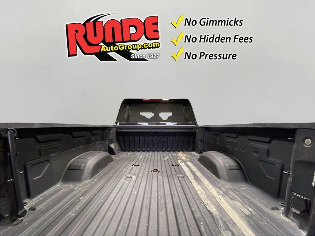 Preferred Equipment Group 4SA: LED Cargo Area Lighting; SiriusXM with 360L; Remote Vehicle Starter System; Electric Rear-Window Defogger; Chrome Surround Grille with Chrome Insert Bars; Unauthorized Entry Theft-Deterrent System; Front Rain-Sensing Wipers; Sierra HD Pro Safety; Wireless Phone Projection; 120-Volt Instrument Panel Power Outlet; Front 40/20/40 Split-Bench Seats; Heated Driver and Front Outboard Passenger Seats; 2 Charge/data USB Ports; Steering Wheel Audio Controls; 2 Charge-Only Rear USB Ports; GMC Connected Access Capable; OnStar and GMC Connected Services Capable; 120-Volt Bed Mounted Power Outlet; Power Front Passenger Windows with Express Up/down; 2-Speed Active Transfer Case; Deep-Tinted Glass; 6-Speaker Audio System Feature; Integrated Trailer Brake Controller; Manual Tilt-Wheel/telescoping Steering Column; Keyless Open and Start; ProGrade Trailering System; Push Button Start; Rear Wheelhouse Liners. Gooseneck/5th Wheel Prep Package. Spray-On Bedliner. Titanium Rush Metallic. LED Smoked Amber Roof Marker Lamps. **Equipment listed is based on o
